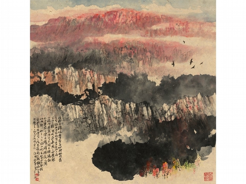 江明賢2016年作《吐魯番火焰山》,69×68公分。