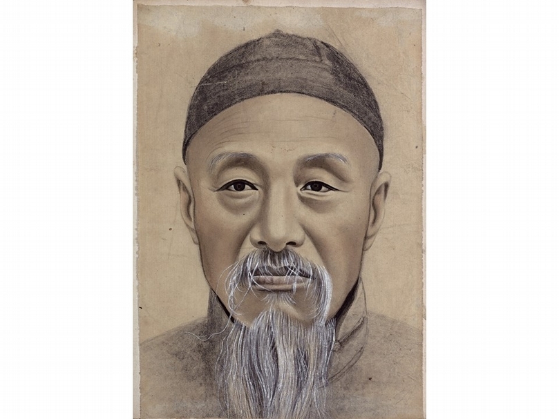 第二套罕見冊頁是一組共74幅的肖像作品,有可能是當時商業藝館繪製人物面容時的樣品範例。在照相技術尚未發達的年代,顧客可以藉由這類圖冊的幫助,來說明指稱他們祖先外觀的特徵和形貌,之後畫家再從中擷取綜合,盡力完成與主人翁真實面貌最為相近的作品。此舉就如同今日警方常用的辦案方式,利用嫌疑犯辨識拼圖(identikit),即依據證人描述,由各類眼、鼻、嘴、耳或下巴等部分而拼製組成犯人面部圖像。在這裡畫家採取西方風格,不僅細膩描寫人物的五官輪廓,更施加陰影與色料,讓臉部顯示出強烈的立體效果與栩栩如生的真實感受。這套冊頁是以人物的頭部容貌為重點,其他諸如手腳、身軀或飾品等皆付之闕如,給予畫家較大的發展空間。在顧客獲得作品後,多會置於家中祖先廳堂內或桌案前,每逢節慶或忌日時加以祭拜緬懷。