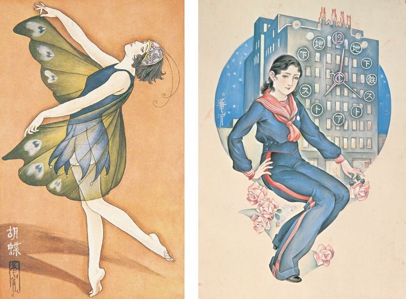 左圖:高畠華宵《蝴蝶》,1930年代(昭和初期),彌生美術館館藏;右圖:高畠華宵《光》,1930年代(昭和初期),彌生美術館館藏。(北師美術館提供)