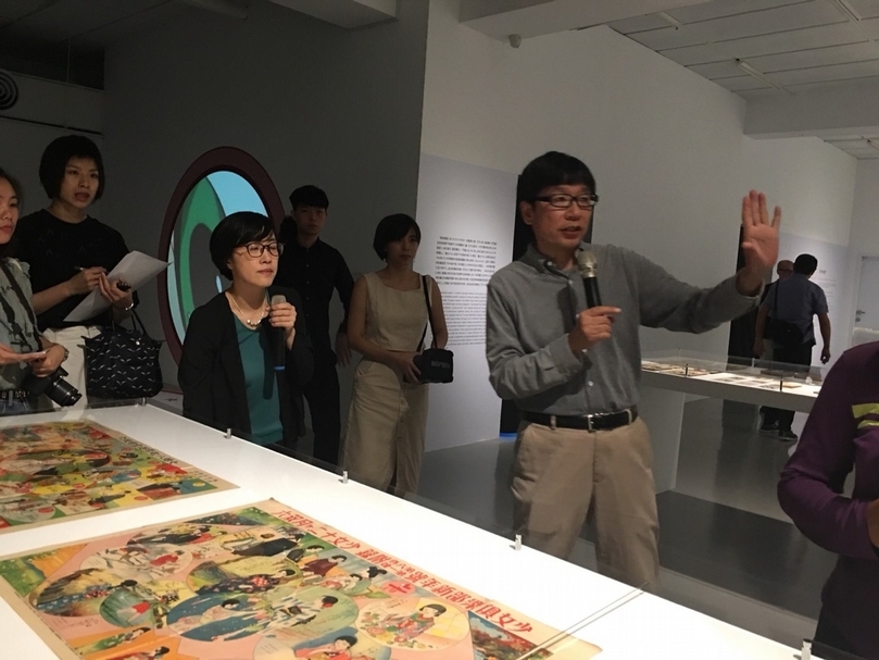 北師美術館「美少女的美術史」開幕現場,策展人工藤健志(Kudo Takeshi)為大家導覽展覽。(攝影/陳飛豪)
