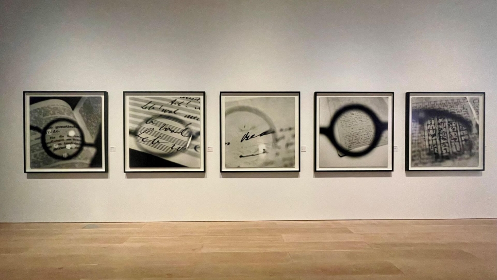 米田知子則是以文化人的眼鏡與文章聚焦呈現系列主題「看得見的物體與看不見的物體之間」,比如谷崎潤一郎的眼鏡置於寫給妻子的書信上、科比意的眼鏡中看「近代居住」的演講稿⋯⋯等。令人產出文學面的柔軟共鳴,也同時販售於6月份的東京現代藝術博覽會。