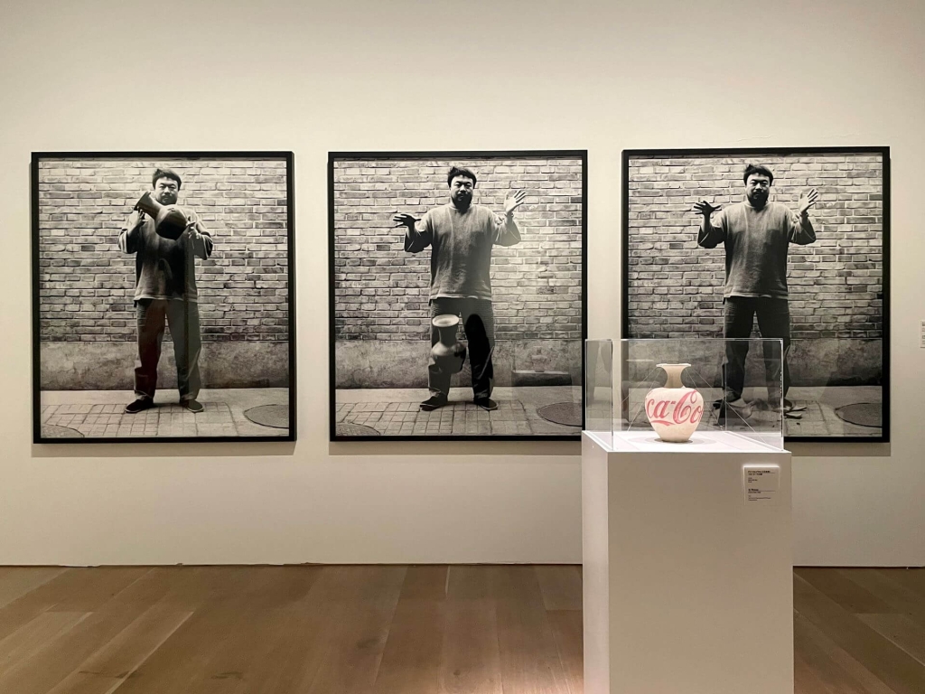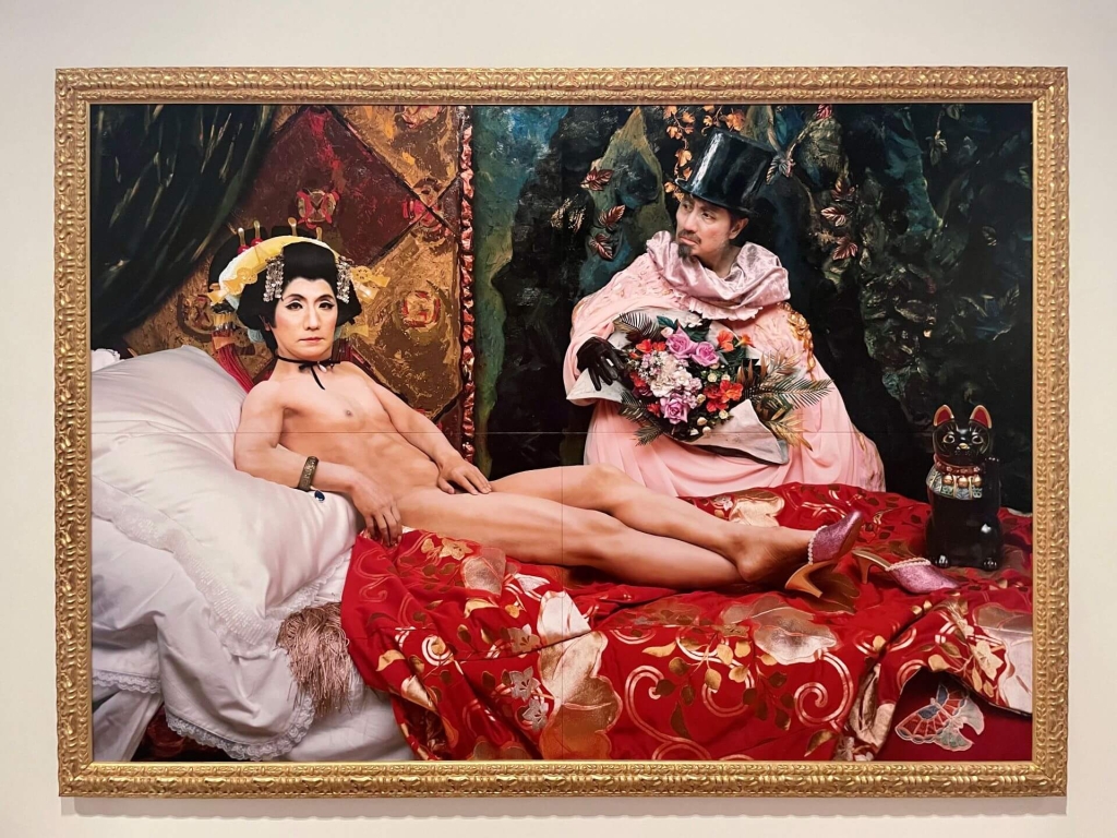 旁邊則是艾未未親自將兩千年前文物摔下的一連串攝影《落下漢代壺》,以此講述隨權力更迭潮起潮落的藝文價值。他勇於開創的風格,也使館方2009年舉他的個展時,得以順利開放全面攝影。另外,以扮演西洋名畫角色著名的森村泰昌,則是注重性別與種族的換位思考。以此反思視為理所當然的歷史事實,從破壞與再造中定位自己的作品。