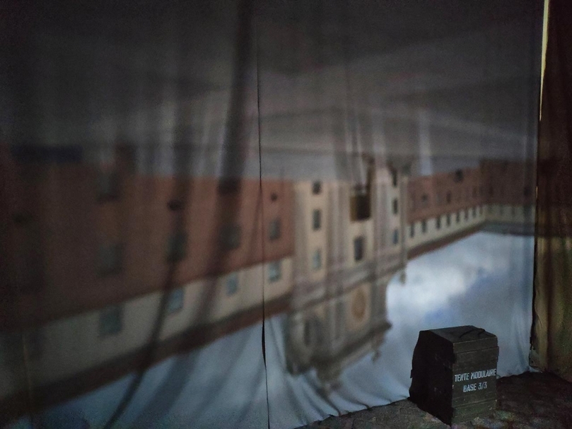 Conde-Duque展場外觀與親子工作坊藝術家團隊Magiae-Naturalis用軍用帳篷做出的大型針孔攝影機。( 攝影/葉佳蓉)