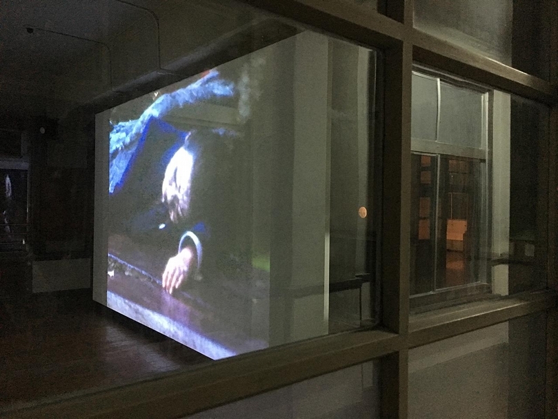 一邊觀覽著空教室中,擺置著各種校內殘破遺留物所製成的現成物雕塑一路走向二樓,也就是水管延伸到的另一個空間。一個演出人質挾持現場狀況的錄像持續播放,背著昏迷少女面露凶光的中年男子、臉上塗滿白粉訴說著哀怨臺詞的詭異女子,彷彿召喚著殘留於此的各種死亡記憶。下一間教室,黑板左上方的閉路電視,則播放著美國總統的演說影片,對比一開始水池的美國國旗,與蜿蜒連結的水管與裝置,亦隱喻了1970年代戰後美日聯盟框架之下的政治與社會狀態,被挾持的少女與孩童彷彿就是殘破的戰後日本,與曾在當地社會衍生出的各種衝突與悲劇。走出校舍來到運動場邊,另一位帕梅拉.羅森克朗茨(Pamela Rosenkranz)的《治癒(水域)》中,則是以過去小學校相撲練習與比賽的「土俵」中,置入了一隻機器蛇,且不時地在中間圍起的範圍內不斷地遊蕩,在這個不再被使用,但因為相撲在日本具有一定的宗教儀式性格,因此還是具有一定神聖性的遺跡當中,既是象徵著邪惡也象徵著生命慾望的動物,悠遊其中的結果是給予另一種新的活力,還是表現出一個失去靈魂的神聖空間,其空殼被嶄新卻完全與原有脈絡相悖的生命取代的狀態,極富想像空間。