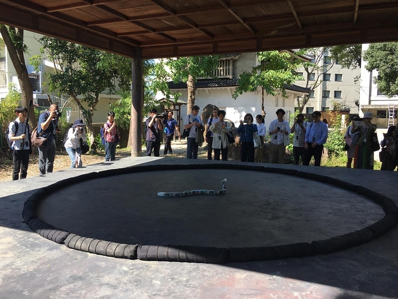 土俵上展示的機器蛇。(攝影/陳飛豪)