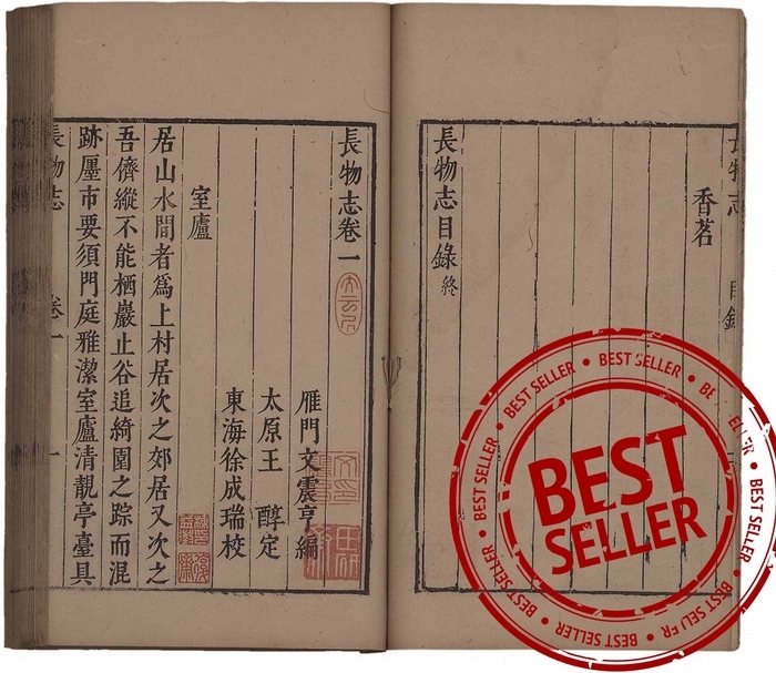 文震亨《長物志》成書約在1618至1619年,前有南宋趙希鵠《洞天清錄》(約1200~1250),明代曹昭《格古要論》(1388)、高濂《遵生八牋》(1591)、張應文《清秘藏》(1595)、屠隆《考槃餘事》(1606)都屬性質相似的閒賞之書。圖書文獻處副研究員許媛婷介紹,「就性質來說,晚明閒賞書籍《格古要論》、《清秘藏》偏向收藏鑑賞;《遵生八牋》、《考槃餘事》、《長物志》則是與生活較為息息相關」。《長物志》為參考採錄前人舊論而成,以今日出版觀點視之,說是剪貼整理亦不為過。但,這於當時的文化社會,並不損其書價值。其最特別處?許媛婷引《四庫全書總目提要》說明,「明季山人墨客,多以是相誇,所謂清供者是也。然矯言雅尚,反增俗態者有焉。惟震亨世以書畫擅名,耳濡目染……且震亨捐生殉國,節概炳然,其所手編,當以人重,尤不可使之泯沒」。清乾隆時此書選入《四庫全書》,主要原因是作者。因為他姓文,文震亨出生書畫世家,是文徵明的曾孫、文彭的孫子,家聲香遠,且最後還殉國,氣節炳煥。這次展出的即為國家圖書館首度借展的明版《長物志》,令人驚喜的是,透過書頁所鈐「文震亨印」朱文方印,可知應為文震亨的自用書。