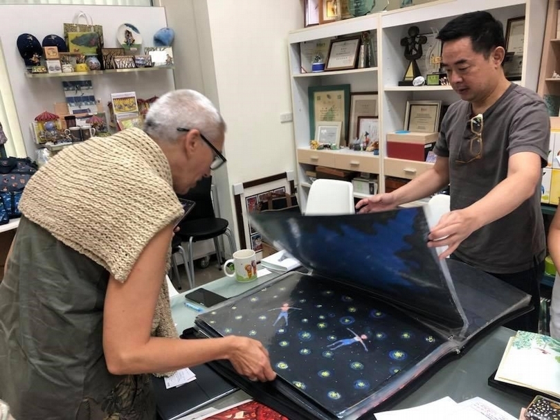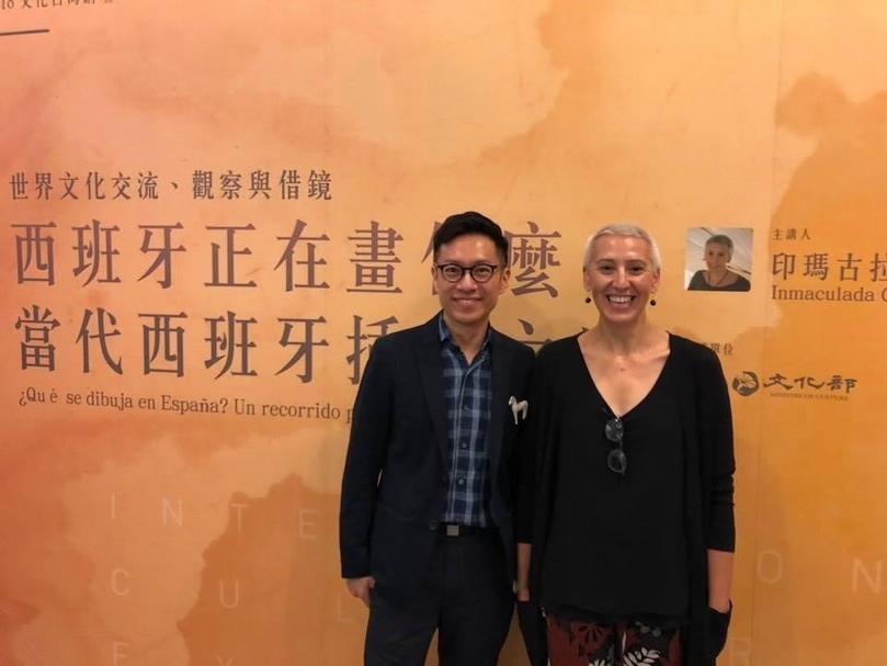 2018年夏天親自赴墨策國際選件的ABC美術館館長印瑪古拉達.葛秋(左)與幾米(右)。(攝影/林品樺)