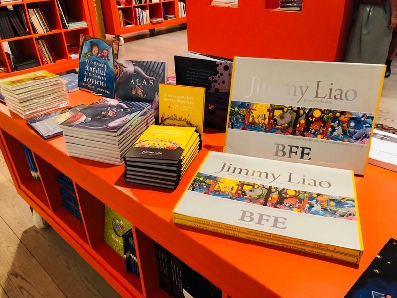 美術館書店現場並販售幾米西班牙語繪本。(攝影/林品樺)