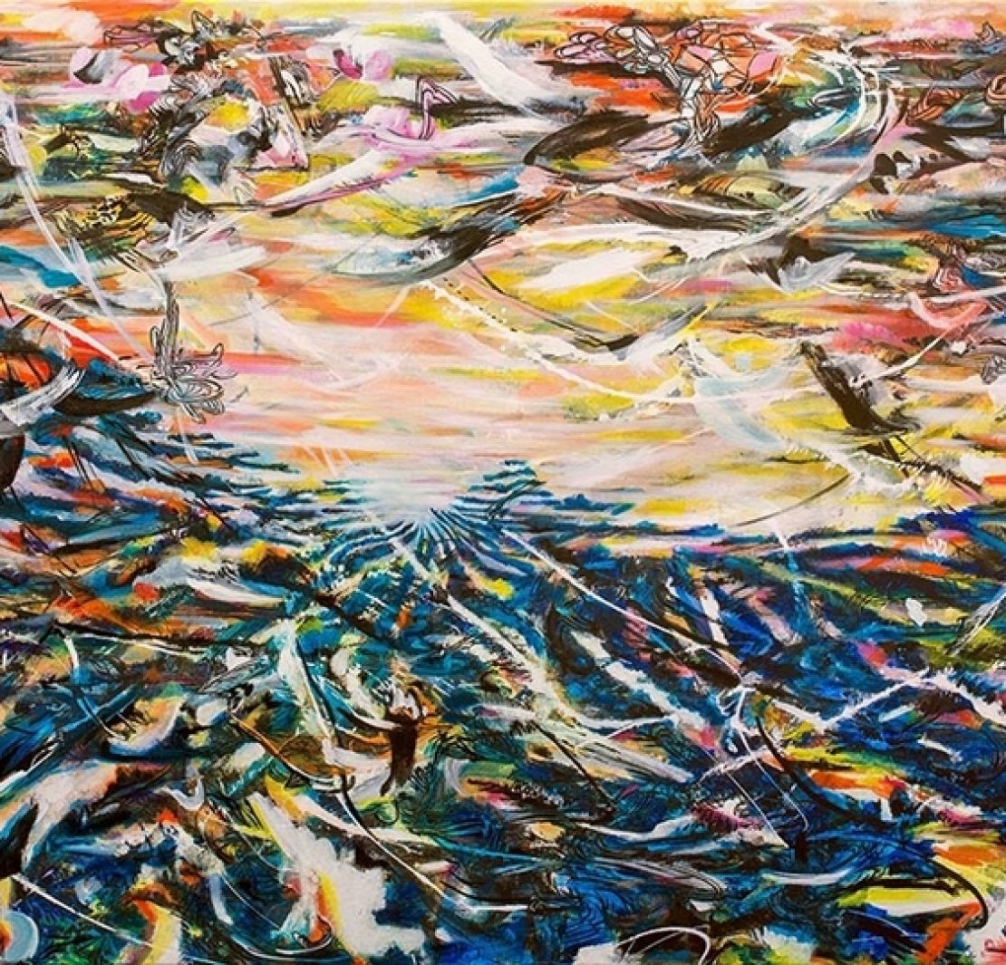 王淑鈴《吟唱的河流8》,壓克力顏料、油彩、畫布,200x280cm,2017-18。(采泥藝術提供)
