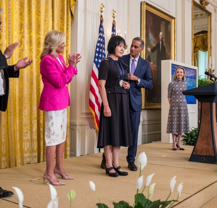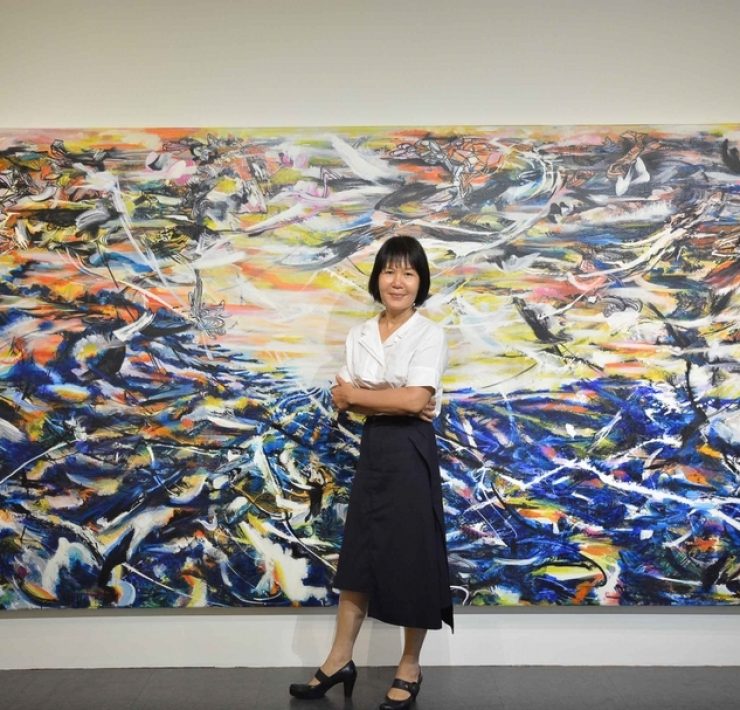 王淑鈴個人網站上的介紹,開頭是這樣的:當代藝術家王淑鈴以大型抽象繪畫著稱,主要探索藝術家自身位於東西方文化之間的定位與距離感。透過對中國山水繪畫原則的強力關注,結合西方歐美繪畫的技法與創意,發展她個人的視覺語彙。