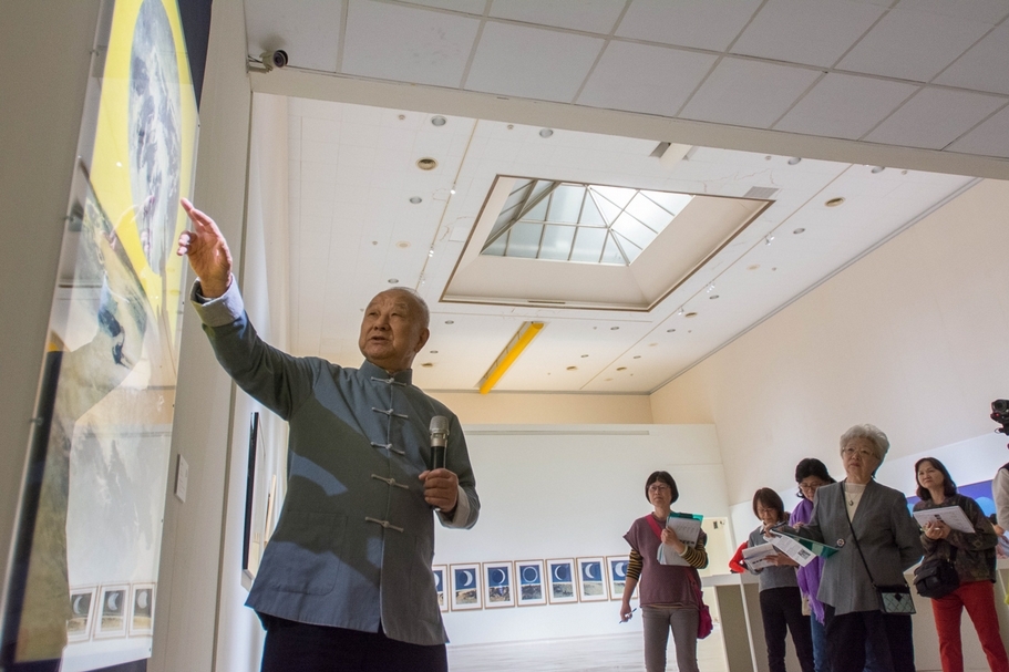 高雄市立美術館舉辦「奔.月——劉國松」大展,藝術家劉國松於開幕當日進行現場導覽。(攝影/林宏龍,高雄市立美術館提供)