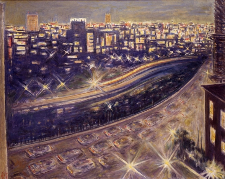 何德來《御茶之水的夜景》,1971年,油彩畫布,72×91公分。(何銓選提供)