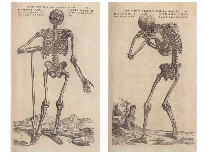 維薩留斯《人體組織》中的骨骼圖像。(本刊資料室)