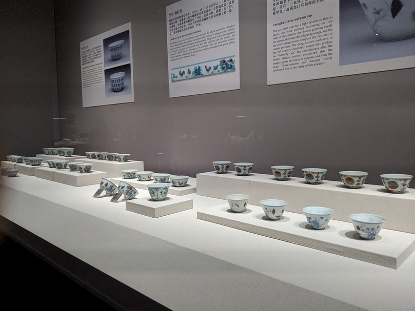 展覽現場展陳的鬥彩雞缸杯。(攝影/王怡文)