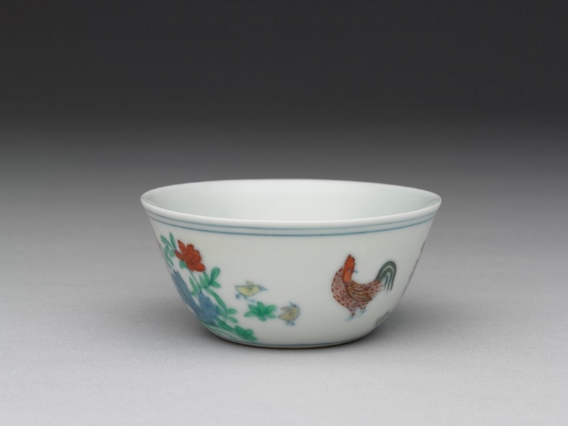 明成化〈鬥彩雞缸杯〉,國立故宮博物院藏。此件文物被收納於〈「采挹流霞」瓷器箱〉中。(圖/國立故宮博物院)