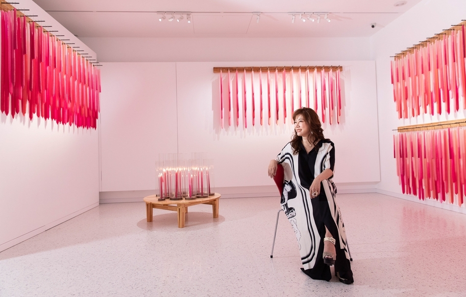 文心藝術基金會董事長葉曉甄於傅丹(Danh Vō)個展現場。(文心藝術基金會提供)