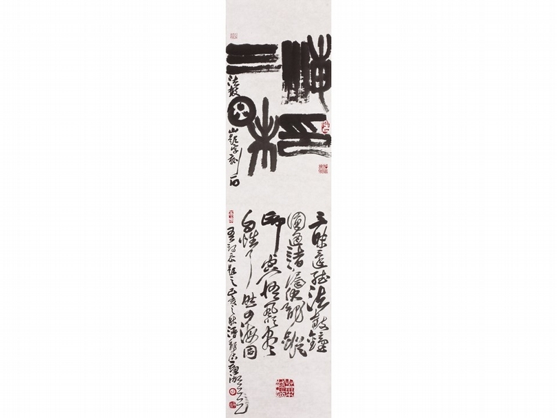 林章湖2019年《自詩.海印三味》, 137×35公分。(林章湖提供)