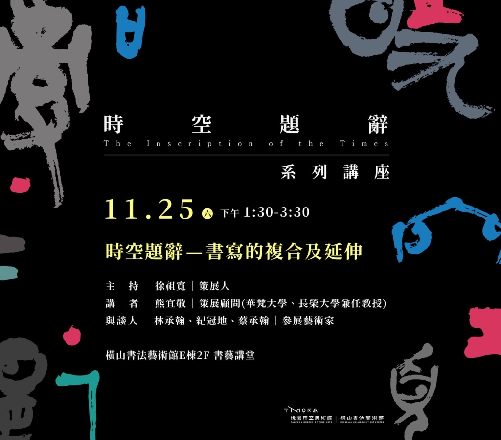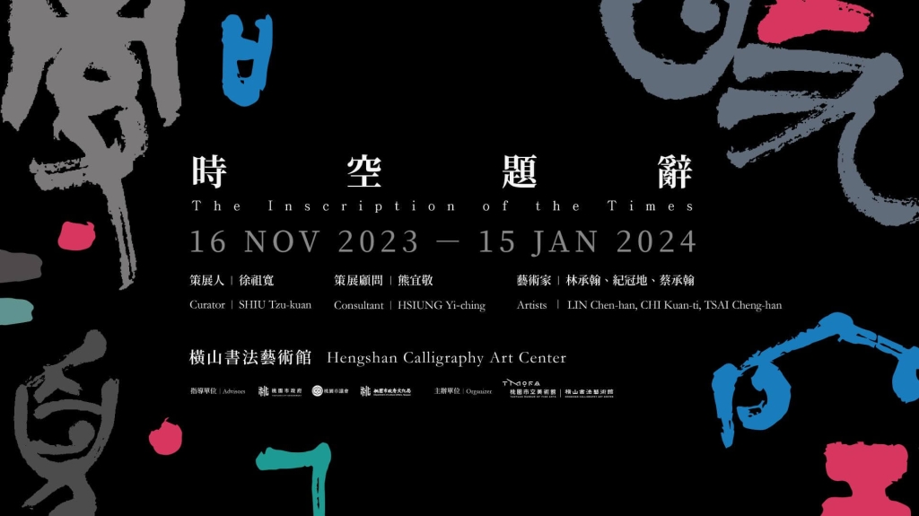 桃園市立美術館(以下簡稱桃美館)為鼓勵優秀策展、創作人才,以橫山書法藝術館為平臺,舉辦「2023橫山書法藝術館展覽徵件」,鼓勵富有時代精神或歷史意義,具創新觀點、議題、形式內容的書法展覽提案。今年策展類由策展人徐祖寬所策劃「時空題辭」脫穎而出,參展藝術家為林承翰、紀冠地及蔡承翰(依姓氏筆畫排序),展期自2023年11月16日起至2024年1月15日於橫山書法藝術館A、B棟展出。