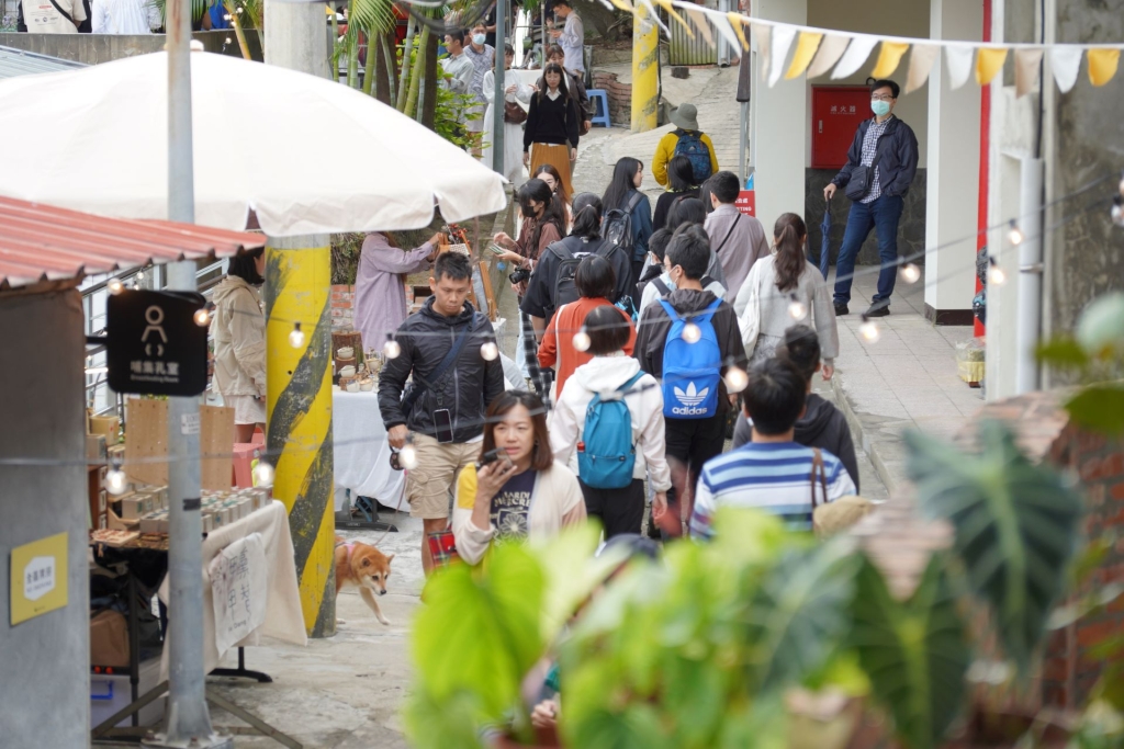 2023寶藏巖慢生活節以周末兩日的文創市集拉開序幕,聯手知名文創手作品牌「好好手感微笑市集」,邀集27家堅持以手作創造文化價值的年輕品牌,首次在村內主幹道上搭設攤位,為寶藏巖聚落注入開幕人氣。舒緩的吉他音樂伴奏在空中悠揚,順著蜿蜒的巷道,沿著主幹道路線的小坡緩行,途中會經過本次微型群聚工藝特展「慢點」的雙展區空間,一處是位在轉角那斑駁獨棟的老舊建築「轉角2號」;另一處,在路的盡頭「閣樓青年會所202號」房,房內那長長的老窗框,鑲著臨水岸的城市天空,可以看的很遠。