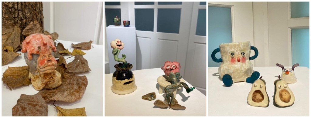 離開轉角2號樓,來到閣樓青年會所202號房。第二展區由周靈芝創作工作室與51門合作共創「怪奇生物展」,以陶土捏製可能存在於寶藏巖的幻想生物。這些繽紛的小陶怪,可能是植物、動物或是精靈,以怪誕誇張、奇異又可愛的視覺效果,勾起人類對異世界的幻想與童心,或許這些未知的小生物就躲藏在村內的某個角落也不一定。