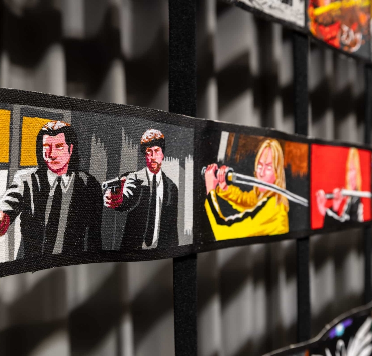 展覽現場中也有大量的展示櫃,呈現姚瑞中自1990年代以來的繪畫所發展出的圖像系統,以及早年舊作、大量手札與檔案紀錄,包括「螺旋槳人」(1994-1996)、「菊花寶典」(1994-1996)、「天外天」(1997)、「人下人」(2001),一路延伸至「犬儒外史」(2004-2005)與「犬儒共和國」(2006)繪畫系列。本次個展便是緊扣著「犬儒者」的敘事以及虛擬的國家體制,且這樣的創作脈絡從姚瑞中1990年代的手稿中,就能找到相關的線索。