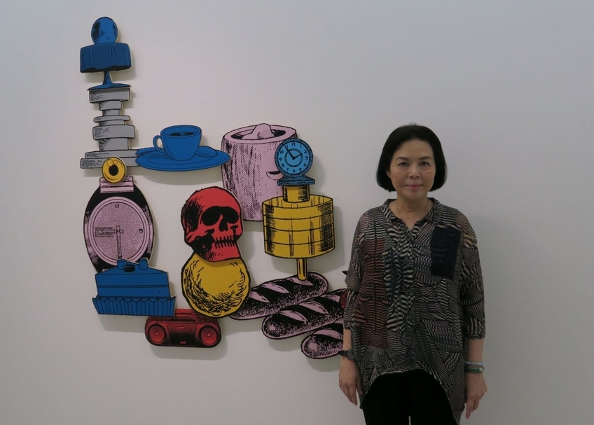 誠品畫廊總監趙琍,牆上作品為金氏徹平《遊戲、舞與結構》。(本刊資料室)