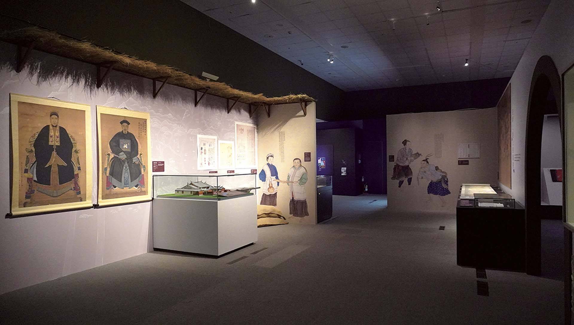 在此「同心圓」層次下,展覽中多以大歷史與客家族群獨特性之間互有交織、又各有不同側重的方式,構成整體觀看動線上的節奏感。開篇的「徙saiˋ」以時間脈絡呈現族群間的互動與融合,以故宮所藏的幾件書畫為始,例如乾隆年間《清謝遂職貢圖》中所表達的「臺灣自古不通中國,至清代才納入版圖」、以及漢人開始大量移居臺灣的歷史背景,到「當客家遇上平埔」,再至「島內流動」等一系列側重點。展品間的關係時常透露出策展團隊的敘事意圖,例如從臺博館所藏《康熙臺灣輿圖》中佔大多數的、代表原住民族聚落的「社」,到《乾隆臺灣輿圖》中愈來愈多代表漢人聚落的「庄」,可一窺時代流轉之下族群之間的互動。再如18世紀平埔巴率族岸裡社的「番頭家」租地給來到中臺灣的客家人耕種時的收租執照;「番頭家」為水權而立合議字,暗藏平埔族受漢人影響而訂立書面合約的線索。不一而足,表現平埔族逐漸受漢人影響的生活方式,既有合作、也有衝突,於農耕、水利、商業、治安,締約與聯姻等多方面的綿密連結。
