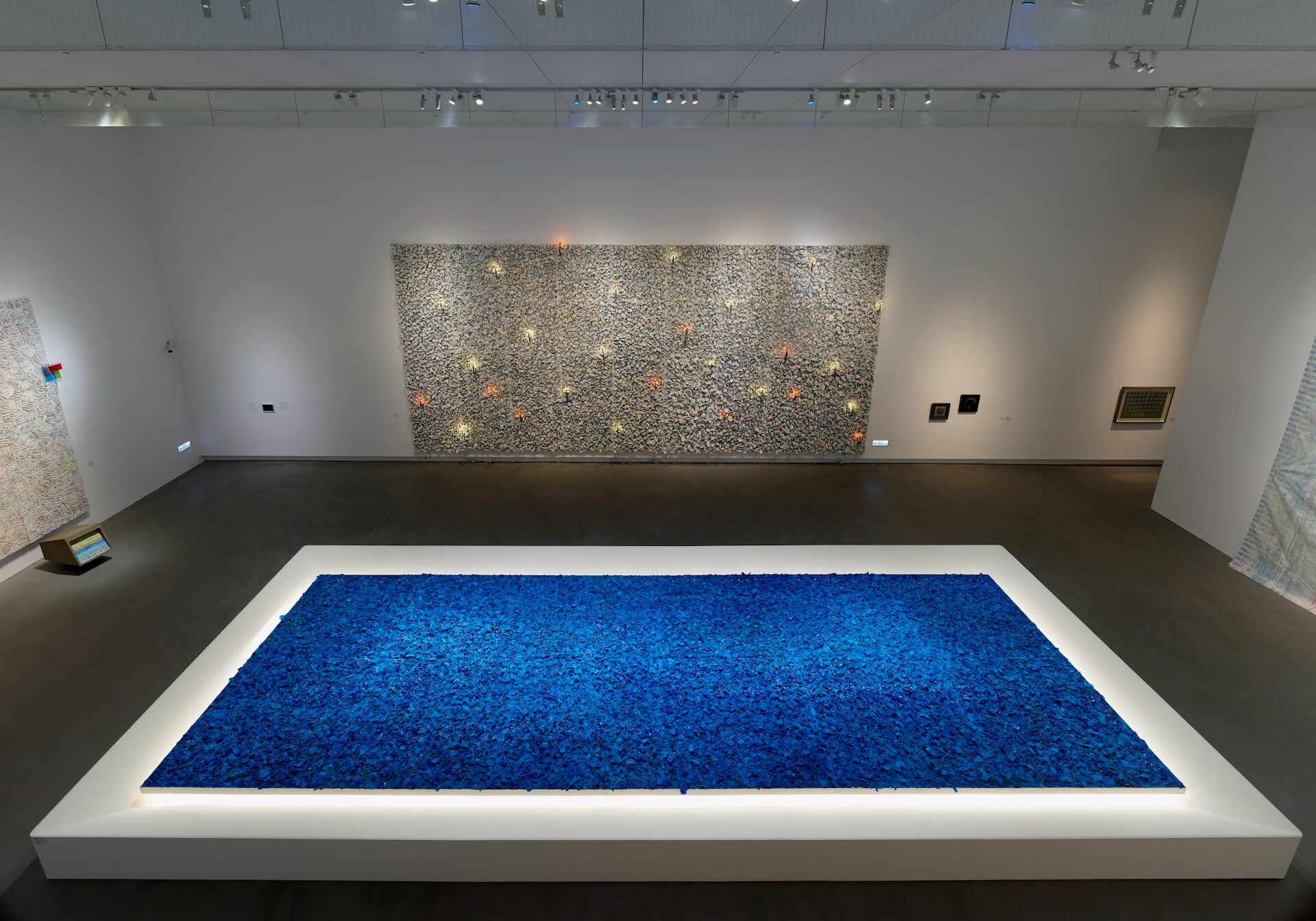 這次的展覽,從大門入口處的《金樽/詩情畫意》開始,觀者可以重點回顧江賢二重要時期《巴黎聖母院》、《比西里岸》、《德布西-鍵盤》、《對永恆的冥想》……等代表作,讓人們可以一窺藝術家創作生涯的前世今生。