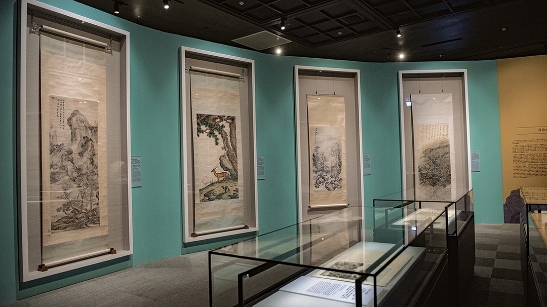 展場空間採用石青(書法)、石綠(繪畫)色調,耳目一新。(國立故宮博物院南院處提供)
