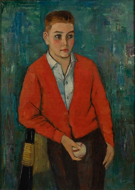 席德進《穿紅背心的男孩》,布面油畫,65×52.5cm,1970。(PTT空間提供)