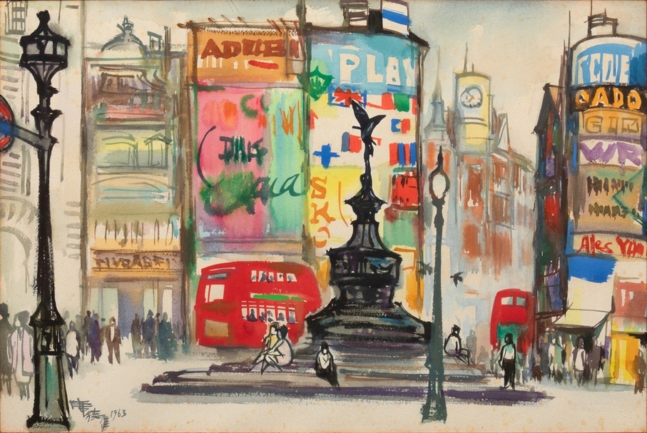 席德進《倫敦皮卡地里圓環》,1963,38.7×57.5cm。(PTT空間提供)
