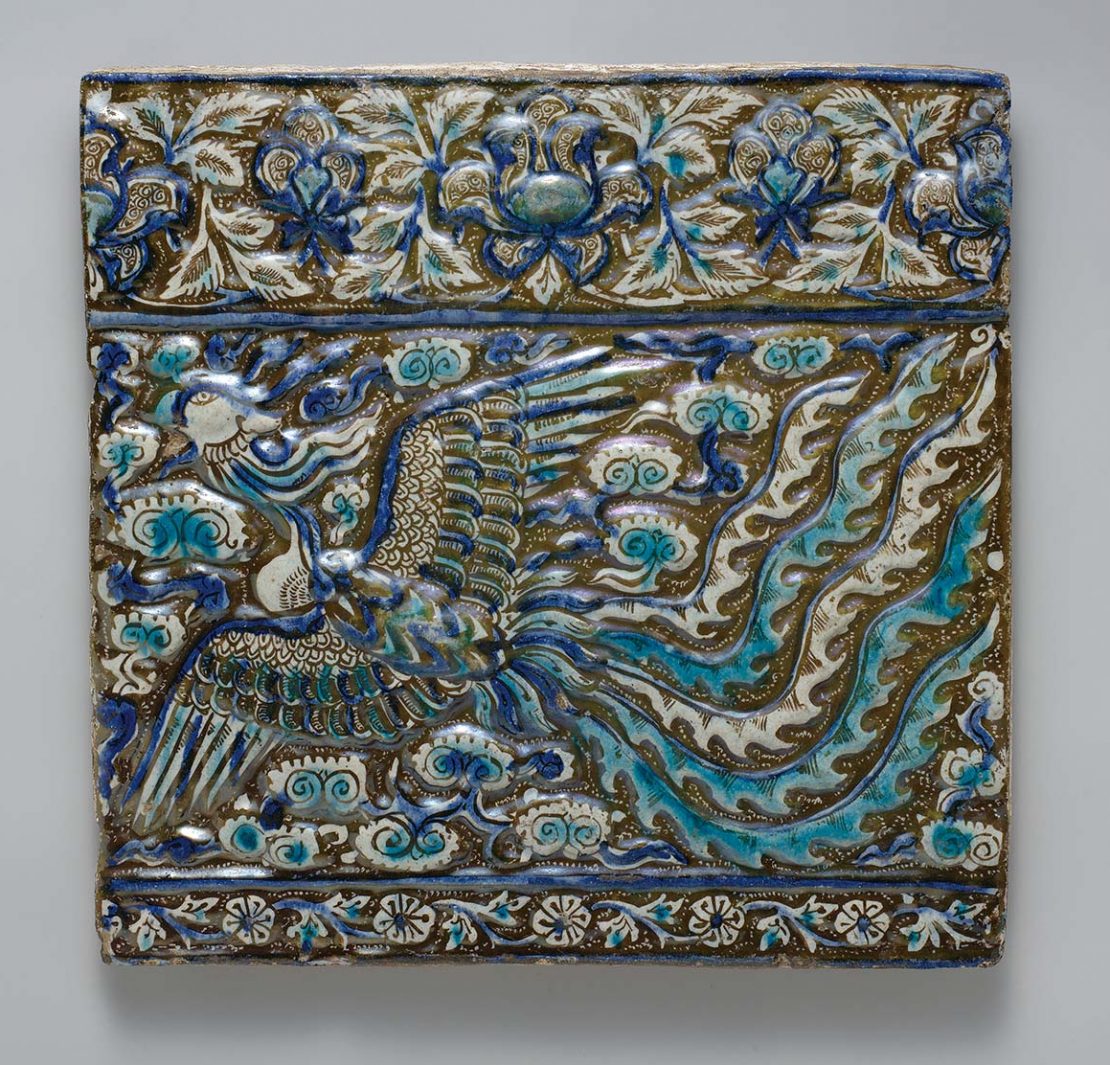 圖7 13世紀晚期伊朗〈鳳紋陶磚〉,高37.5公分,寬36.2公分,可能來自蘇里曼聖殿(Takht-i Sulaiman)考古遺址,美國紐約大都會藝術博物館藏。© The Metropolitan Museum of Art