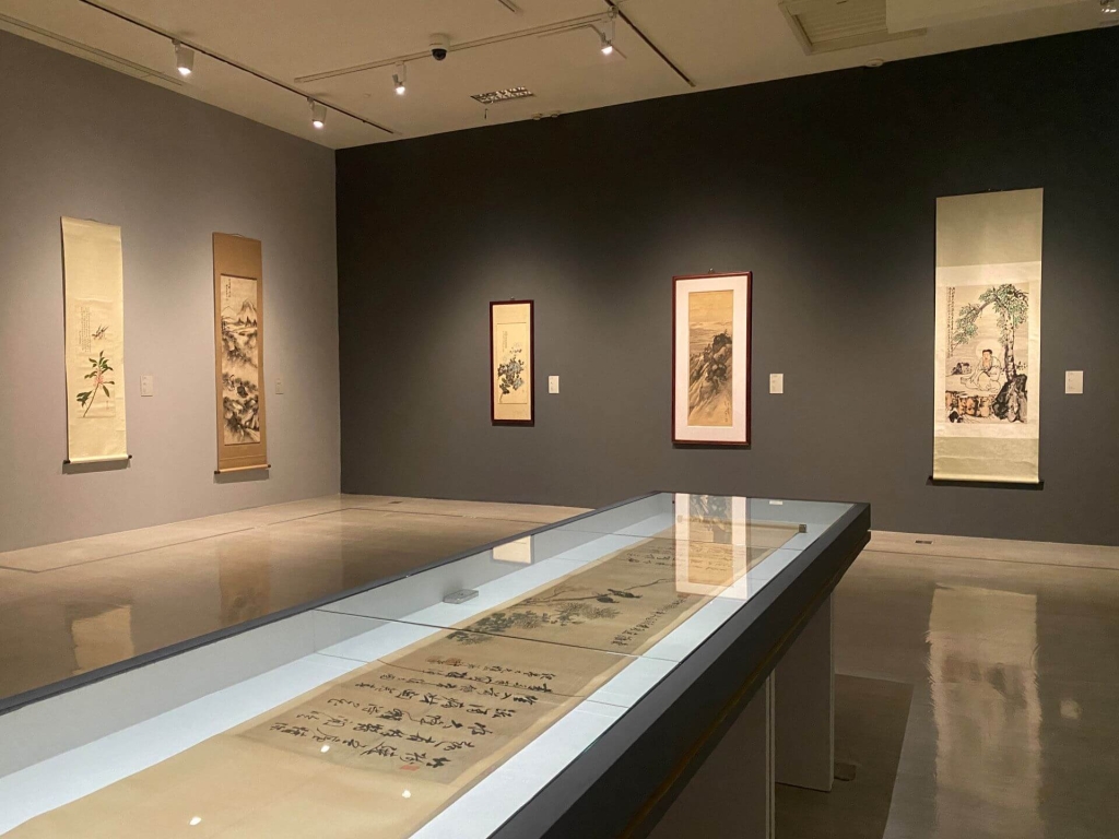 另一展區「臺灣早期繪畫」,則呈現清領至日治時期臺灣書畫的發展。呼應此次「匯流」的展名,通過作品的陳列,我們觀察發現一直到日治中期以前,臺灣水墨發展實際上存在「兩個傳統」。首先是從清帝國沿海地域所傳入的畫風,包含從福建傳入,風格狂野不羈的「閩習」,以及上海地區的海上畫派等等。然而,展覽中朱山(曾任彰化縣知縣)的作品,《墨牡丹圖軸》這種風格華麗、層次豐富,脫離前述畫風的作品,也值得注意。