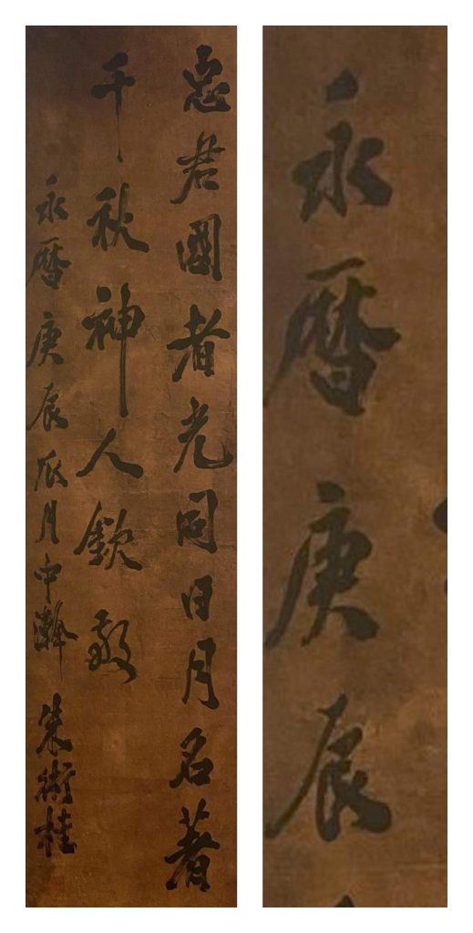 此外,《忠君格言行書軸》的書風與過去流傳朱術桂的墨跡不符,或許可以用各年齡階段的轉變解釋,但落款上「永曆庚辰」的年號疑雲,期待國美館進一步釋疑。