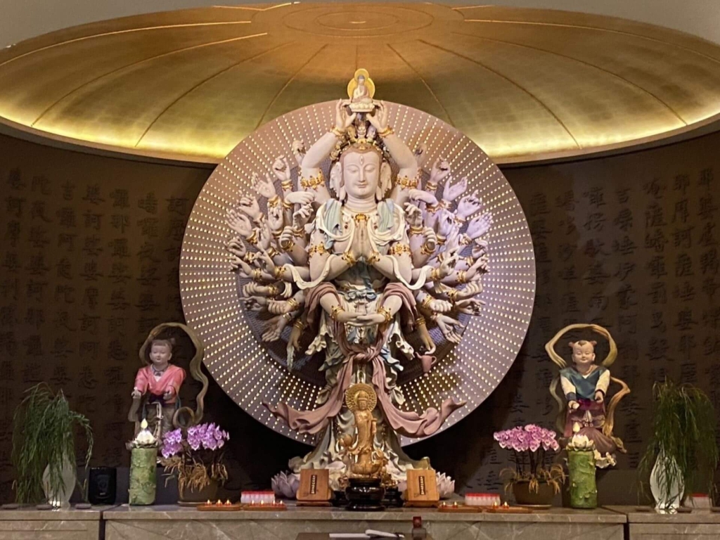 1996年金馬影后楊惠姍來到敦煌,在此遇見了千手千眼觀世音菩薩,決心要將八百年前、終將消逝的觀音壁畫,打造成一尊供千萬人瞻仰的佛像。2011年她如願完成5公尺高立體版仿元代的千手千眼觀音像,捐贈給佛光山,現正供奉於佛陀紀念館一樓普陀洛伽山觀音殿。