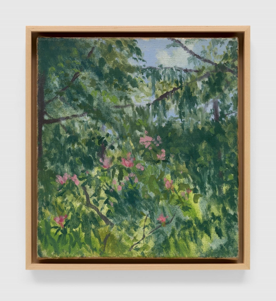 藝術家對時間遞嬗的敏銳觀察也體現於一系列的風景作品,尺幅相對精巧的作品呈現瓦格納在2000年前後於賓州農場所見的景致,這類寫生油畫大多直接以創作時的月份命名,透過描繪當令植物或風景色彩反映四季分明的自然風光。帶有濃密綠意的《七月 #10》(July #10)即以具躍動感的短促筆觸堆疊出林蔭的層次深度,這類印象派風格的創作是瓦格納記錄時間的另一種表述方式。而在本次展覽,亦可看到瓦格納以幾何圖形排列出概念化的樹木造型,流露出她對自然元素的關注,也在其向來理性冷靜的創作風格流露出另一種遊戲式的意趣。瓦格納在抽象和具象之間轉換,僅就內容與形式看來各不相同的系列作品,最終仍會因為她對環境與物質的理解而達到統一調性。