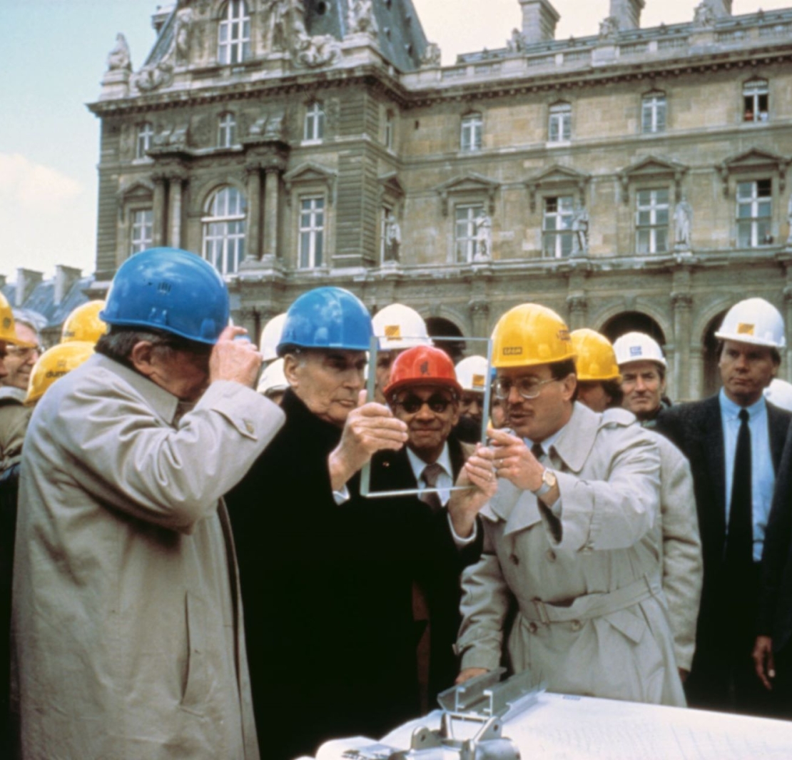 貝聿銘為大羅浮宮計畫(1983-1993)設計了一座玻璃金字塔,成為連結各個獨立宮殿的新中央入口。但他很快發現當時建築業尚未有張拉整體結構空間桁架的技術,於是他轉向帆船製造商,訂製組成支撐金字塔結構的複雜接頭。當時市面上販售的玻璃多帶綠色調,貝聿銘則堅持金字塔須採用完全清澈透明的玻璃。於是在法國總統密特朗的介入下,委任法國最大的玻璃製造商聖戈班開發量產這種玻璃,金字塔才有了彷若水晶般透明的光學效果。