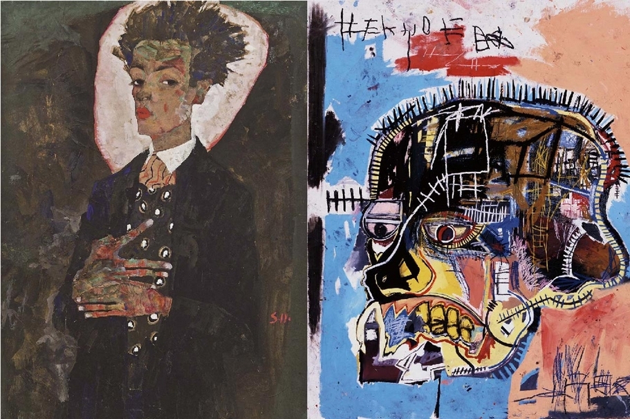 埃貢.席勒和尚.米榭.巴斯奇亞,同樣擁有令人眼花撩亂的戲劇人生,同樣死於28歲,他們都在短暫的創作生涯中,都同樣留下大量的作品。他們皆帶有高度的對抗意識,席勒對抗著維也納傳統的庸俗與虛偽,而巴斯奇亞的作品則大大譴責種族主義所給予的暴力。他們都創造了一個新的自我畫風,前無古人後無來者的經典。兩者皆以人物形象為創作的中心,也時常將自己入畫,是為彌賽亞的概念。最後,他們又皆在最美好最成熟的時候悲劇地殞落。