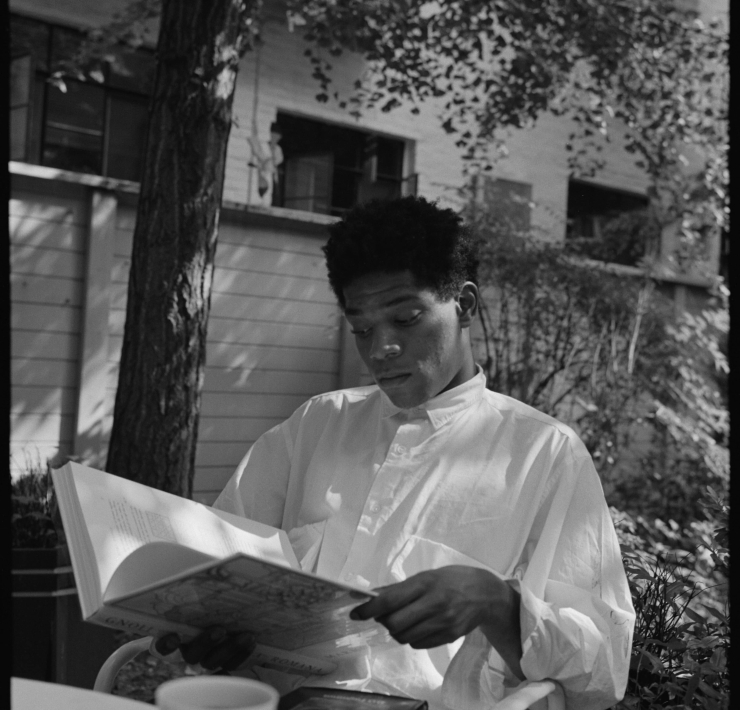 生於紐約的布魯克林區,為海地和波多黎各的混血的二代移民,雖然是黑人但並非出身寒微家庭,父親曾任海地內政部長,母親專職印花布設計,祖父亦為是吉他手兼拉丁諾樂團指揮,年幼的巴斯奇亞也因此從小受到藝術的薰陶,四歲就開始塗鴉。1976年他開始走上街頭,以「SAMO」(Same Old Shit)為名進行塗鴉活動,「SAMO」意味著「同樣老套」的意思,同時也會書寫饒富玩味的符號與富有詩意的句子。兩年後他因為惡搞校長,被勒令退學離開高中,開始波西米亞式的生活,活躍於蘇活區一帶,進出紐約地下文化的基地,也因此遇到了許多流行文化的大家們, 如:大衛.鮑伊(David Bowie)、 瑪丹娜(Madonna)、安迪.沃荷(Andy Warhol)、凱斯.哈林(Keith Haring)以及策展人/藝評家的科爾特斯(Diego Cortez)。1981年,他參加後者於策劃的「紐約/新潮流」大展,正式走紅躋身紐約藝壇,受到許多藏家的青睞。他也開始使用不同的媒材,並嘗試油畫創作,風格繼續承襲塗鴉時期的不羈,大膽奔放色彩與線條,混合街頭以及各種次文化的元素,骷顱人物、非洲面具的頭像、足球、汽車、警察、建築、牛仔外套……天馬行空的被使用在其畫作之中,充滿文學性的詩句與符號……以兒童天真的手法描繪大都市的形形色色。次年開始,他和朱利安.施納貝爾(Julian Schnabel)、大衛.薩利(David Salle)、恩佐.庫奇(Enzo Cucchi)等人一起展出,帶出一股新的時尚以及風格潮流,被稱為新表現主義。