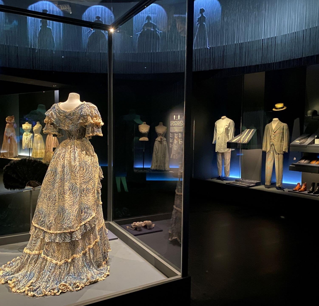 而19世紀的法國時尚圈幾乎每隔10至20年就會迎來一波時尚變革。隨著物換星移,展覽結束於19-20世紀之交的「美好生活」,新興科技如飛機、無線電等發展,加快了社會節奏,因應新生活的簡便服飾誕生,再度吹起新世代的時尚風潮。此外,展覽在各區皆選用了不同的電影片段無聲播放,希望透過劇中人物的穿著,讓觀眾了解展櫃中服飾穿戴的場合及文化意義。同時,大家也必須意識到,現場所有的禮服時裝,皆為真人訂製擁有,因此每一套服裝的人體模型都必須配合服飾的形狀打造。