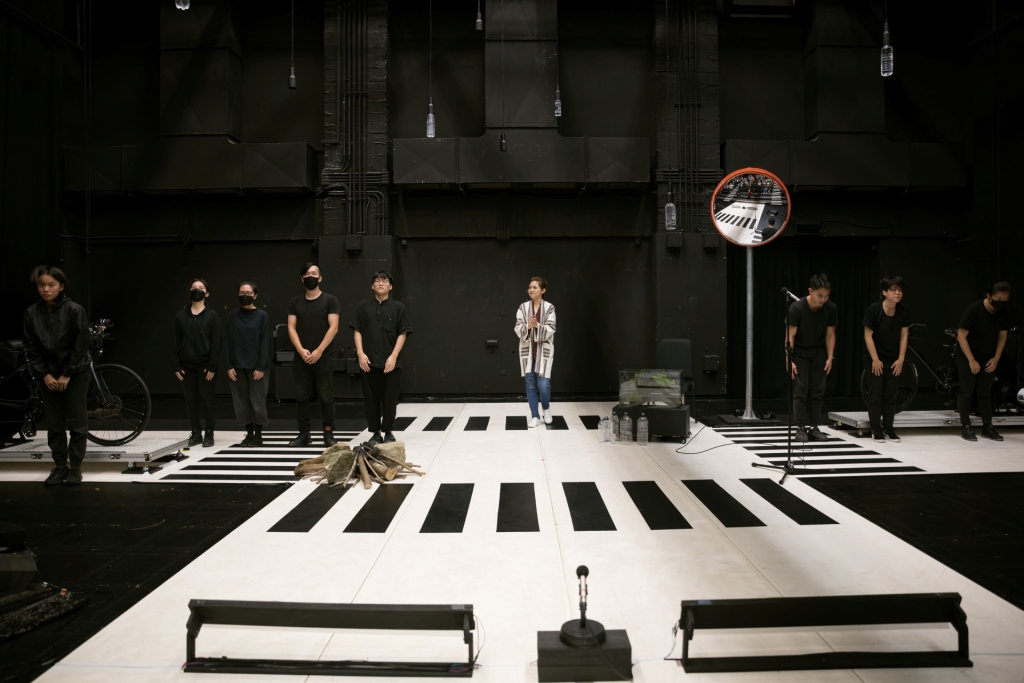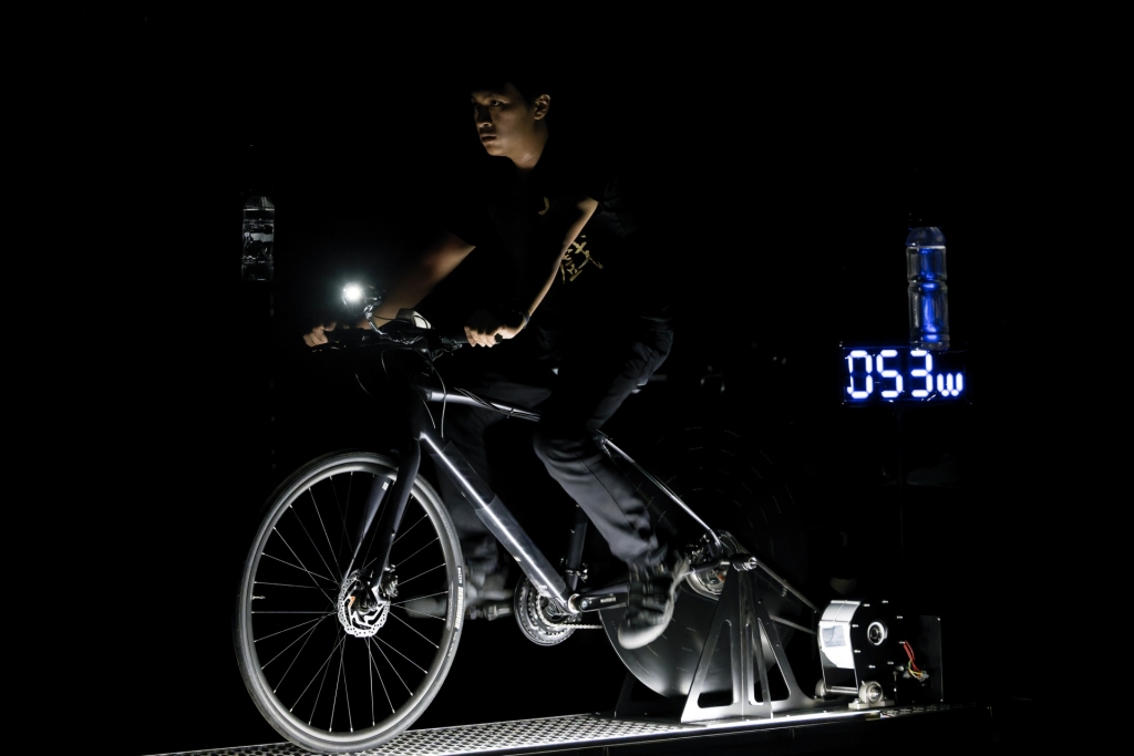 第二區的「文化舞台」的展出作品在其創作內容與硬體形式是相輔相成,甚至是相互成就的。例如:兩廳院的《寫給滅絕時代》實驗劇場採用人力踩動腳踏車發電的方式,提供整場演出所需的電力。而臺中國家歌劇院的《在消逝之前,能不能喜歡我?》亦藉由肢體舞動與演奏樂器的動能裝置發電。透過這些吸睛的裝置引領觀眾進入思辨階段,設置相關的提問與議題讓觀眾思考,並非僅是單向式、說教式的資訊輸出,藉此提高主動參與性。面對淨零減碳如此大的議題,每個人的觀念與理解程度不一,不免會擺盪在積極行動與消極觀望之間,「其實只要大家開始思考、產生意識,就是跨入積極行動的那端。」