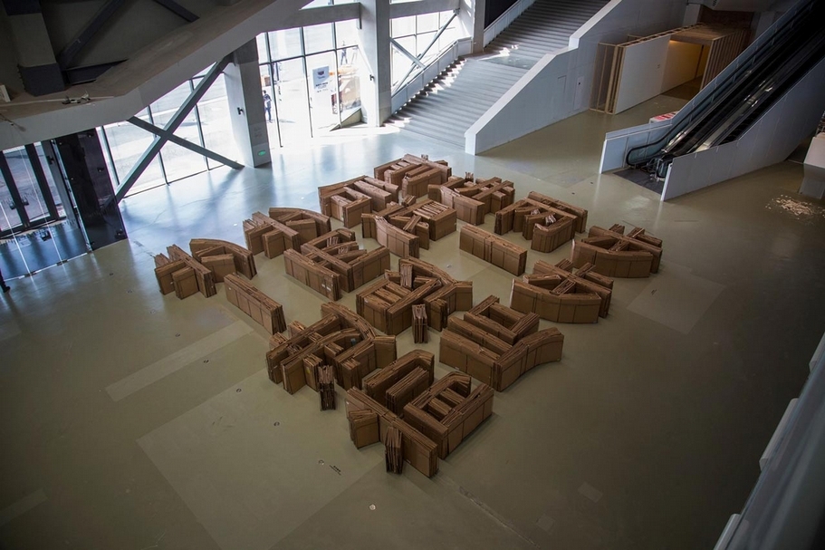 恩裡克.耶澤克(Enrique Ježik)《圍地》(In Hemmed-in Ground),鋼結構、可回收紙板,2018。(© 上海雙年展)