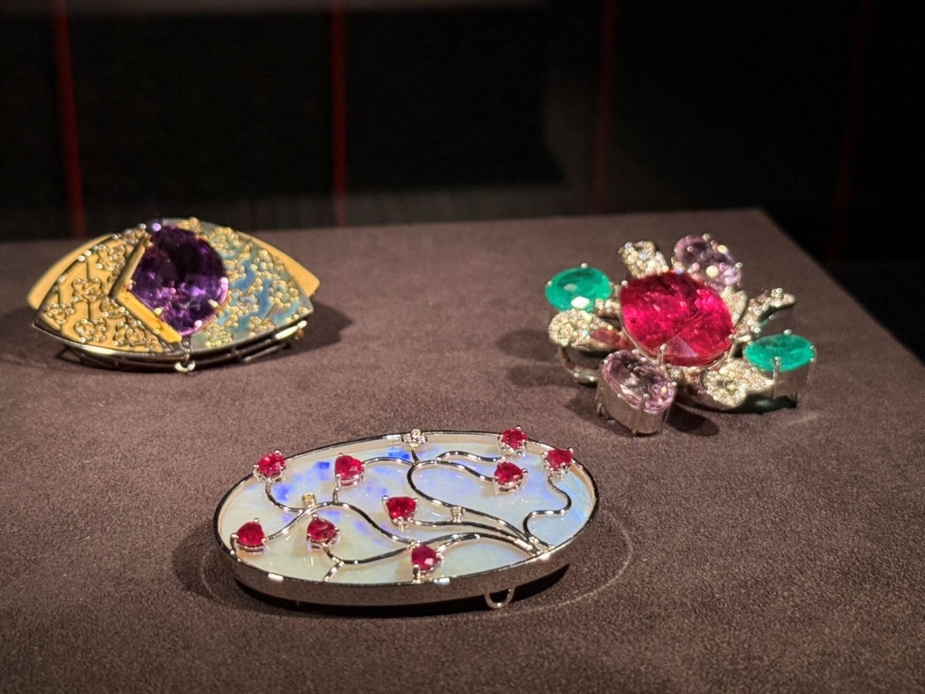 工藝家粘碧華深耕刺繡工藝領域近40年,2023年獲「國家工藝成就獎」,是獎項設立以來,首位獲獎女性工藝家。「幸福藝響」展出工藝家粘碧華刺繡創作與工藝收藏140件,包含刺繡、首飾創作,以及珍藏的傳統刺繡作品。粘碧華特別為此次展出創作一幅「虎嗅薔薇」手工刺繡老虎作品,整體設計靈感來自西藏文化,老虎是力量和好運的象徵,並結合英國詩人西格里夫.薩松(Siegfried Sassoon)的名詩《於我,過去,現在以及未來》(In Me, Past, Presend, Future Meet)中的經典詩句「心有猛虎,細嗅薔薇」(余光中譯),與英國都鐸王朝的徽章「都鐸薔薇」造型完成創作,以此祝福大家新年充滿愛與力量。