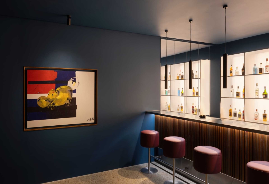 又如艾默格林(Elmgreen)與德拉塞特(Dragset) 雙人組建築師,設計的《K Bar》,向已故德國藝術家馬丁.基彭見格爾(Martin Kippenberger,1953-1997)致敬,該藝術家生前以挑釁、幽默,嗜酒如命的公眾形象聞名,畫作置於《K Bar》的亭閣藝術建築內,每次舉辦活動時,當地調酒師也會加入提供雞尾酒,參觀者與背後藏品形成了巧妙對話。從1995年開始,艾默格林與德拉塞特,就以雙人組形式,開展藝術創作,探討藝術、建築與設計關係,以敏銳視角,在創作中顛覆常理,借作品傳達對社會文化的關注。