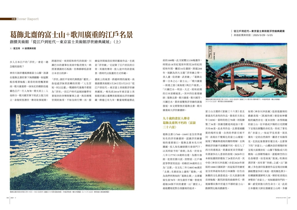 (原文載於《典藏.古美術》390期〈葛飾北齋的富士山+歌川廣重的江戶名景──創價美術館「從江戶到近代—東京富士美術館浮世繪典藏展」(上)〉,作者:藍玉琦。)