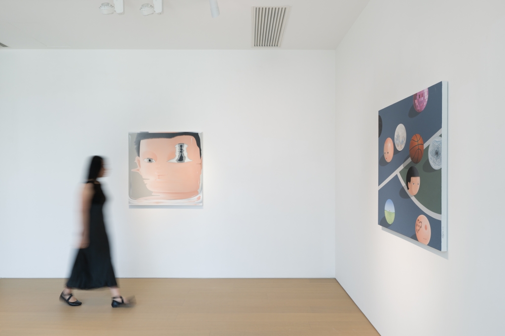 貢坎受訪時就首先表示,這次展覽對他而言是邁入下一階段的全新里程,承接去年於曼谷舉辦的「No Heart Here」展覽作品觸及心理治癒的議題在展現他所感受以及想表達的。「異時.相繫」更聚焦於自己這個世代與上一世代之間的落差,並探索不同文化之間所存在的邊界、差距與性別多樣性的間隙,以「對的人/錯的時間」概念反映出這種不⼀致的親和性,以及如何與之聯繫的詩學。貢坎透過審視本身的過去與現在,並擴延出不同個體之間也必然會有的對立與折衝,在高度揉合個人生活經歷的創作脈絡當中,持續挑戰社會規範、文化編碼乃至道德價值觀的換位思考與實踐。這些深沉甚至難以得到解答的問題意識,在其帶有童趣、明快與平面化的創作風格能夠讓觀者易於讀取並由此與他一起探索。