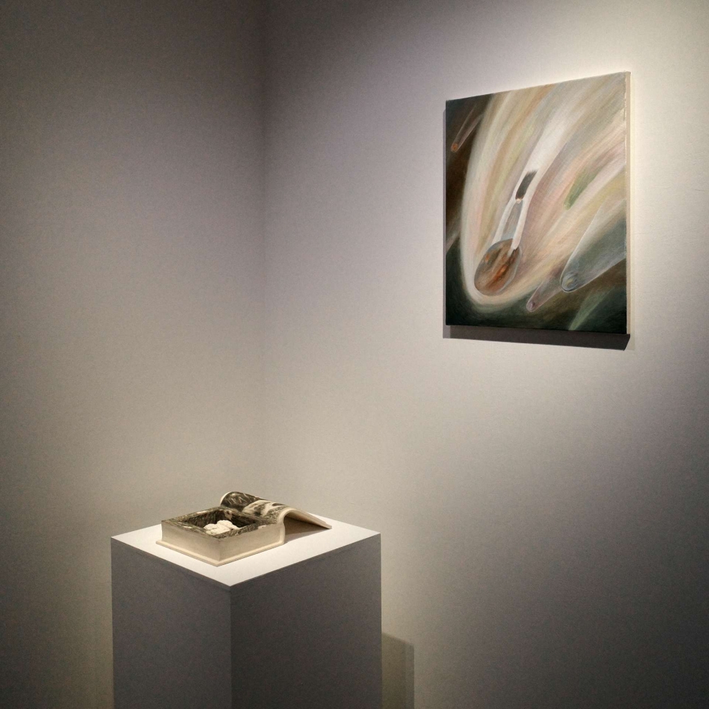 如果將生命視為一趟旅程,那麼死亡就是終點的彼岸,展覽以陶作《一隻鳥的遺書》與畫作《墜落之旅》作結,前者是「不能飛翔」,後者則是「勢不可擋」,是藝術家對於人抵達死後世界的獨到詮釋:離去與抵達,從來都是一體兩面。