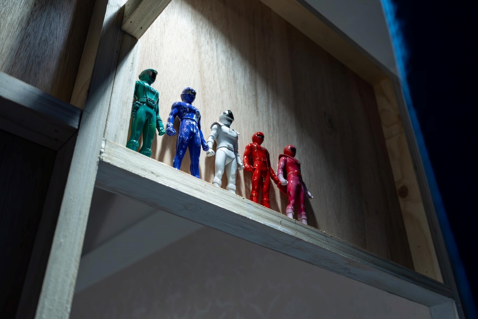 在「歡迎光臨介力屋」展覽中,我們不僅能看到所謂「Gen Z」(指出生於1997年至2012年間)藝術家們透過戰隊角色、模型玩具和彷彿老家頂樓般的空間,回應自身的成長背景,更能感受到他們試圖以「戰隊」邏輯,為當代藝術語境中過度強調文本與理論的窠臼尋找新的突破口。
