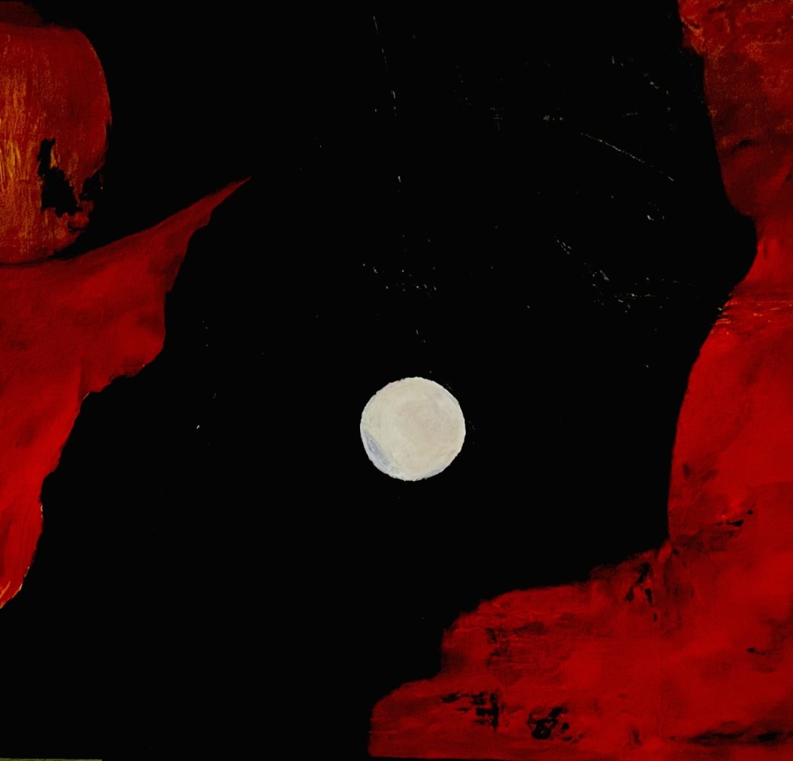 他的創作亦強調自動性與偶發性的藝術精神,時常呈現出近乎「天人感應」的創作契機。在《時空的長河》(2022)中,他歷經多次顏料的堆疊與重構,始終未能達成理想畫面。直到某夜將畫作暫時擱置,隔日卻驚覺前夜未乾的顏料於靜置中自然流動、交融,意外地形成極具層次與空間感的肌理結構,彷彿與自然共創,意境悠遠,氣韻生動。這樣的經驗,使他篤信「從放空自我,來成就藝術的圓滿」的哲學實踐。而另一件《神遊物外》(2022)則以極簡構圖與凝練色調營造出一種靜觀內省的詩性空間,讓觀者在凝視之中體會時空的寧靜與浮動,彷彿是一場與自我和世界對話的停格時刻。