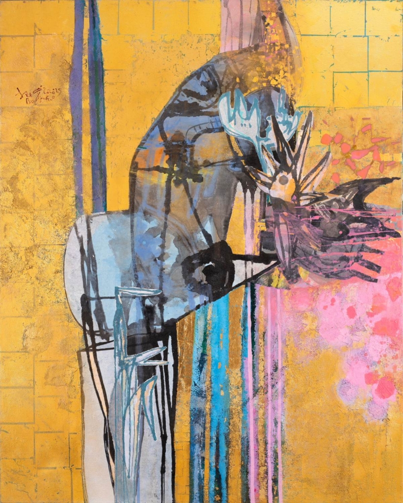 就像是西班牙大提琴家卡薩爾斯(Pablo Casals,1876-1973)所言:「我首先是一個人,第二是音樂家,再來才是大提琴家。」其琴音之所以能感動人心,奠基於他在音樂澆熔的靈魂絮語。縱使大約每隔十年就會在創作上出現變化,如是對於生命、對於自由始終抱持著普世的人文關懷,始終貫穿了郭博州至今的藝術生涯。今日回頭來看,從1983年還就讀師大時期所畫的《生命的迴旋》,到1990年美伊戰爭爆發而開啟了其複合媒材創作的《戰俘》等作,想來都可視為明證。
